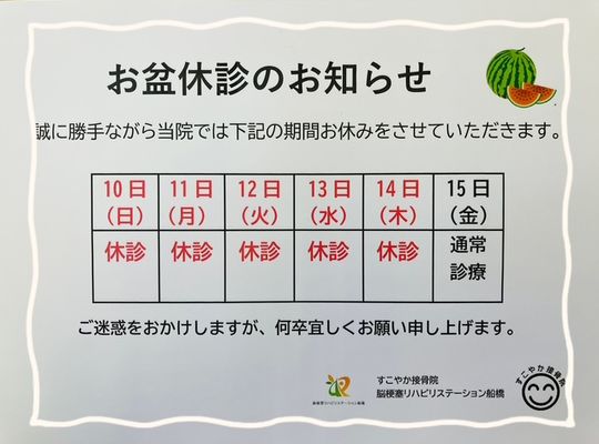 脳梗塞リハビリステーション船橋夏季休業のお...