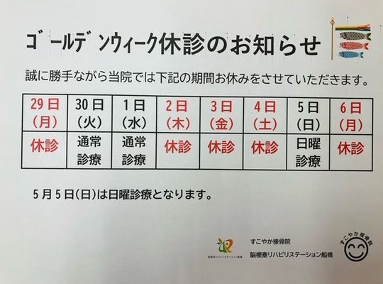 ゴールデンウィークお休みのお知らせ